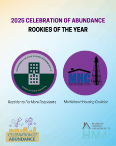 We are proud to honor AHMA affiliate groups, Rozzidents For More Rozzidents and Marblehead Housing Coalition, for their commitment to advocating for more homes and addressing the housing crisis within their communities.