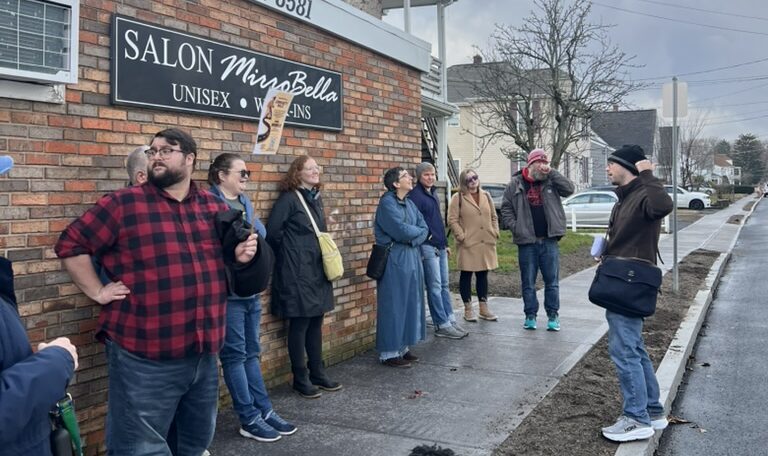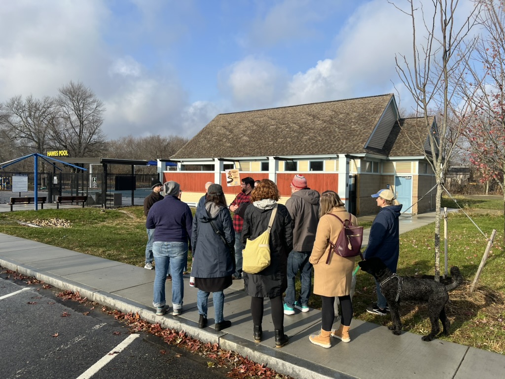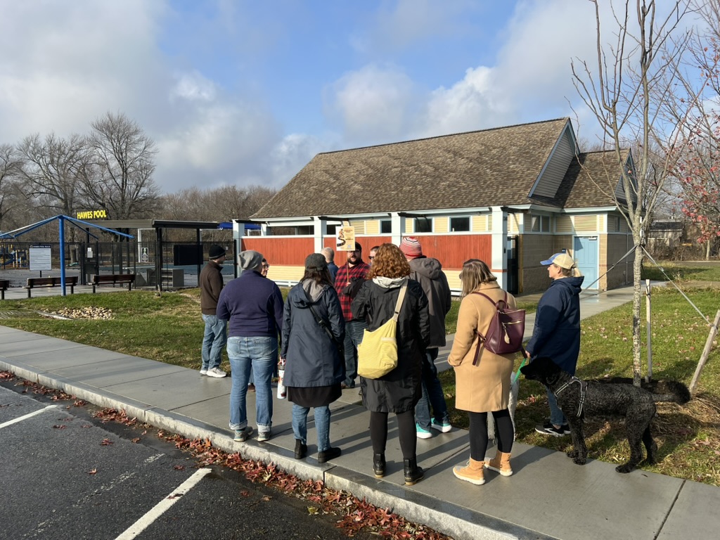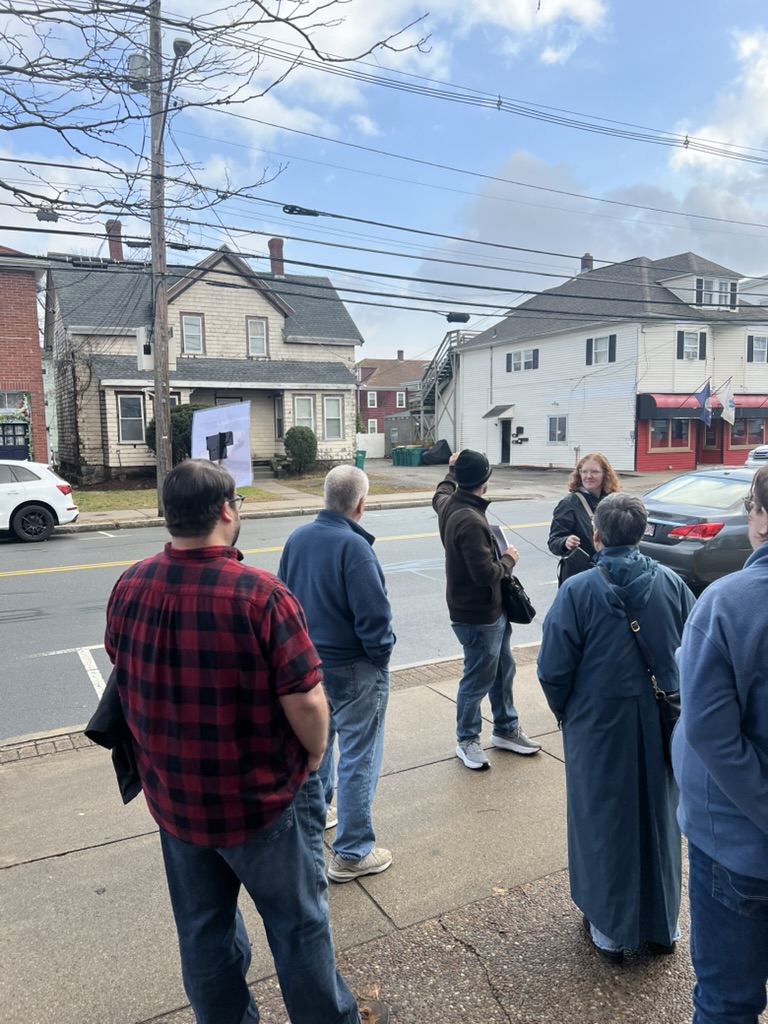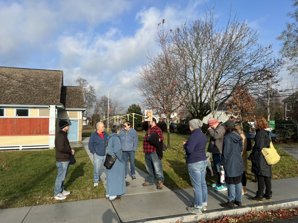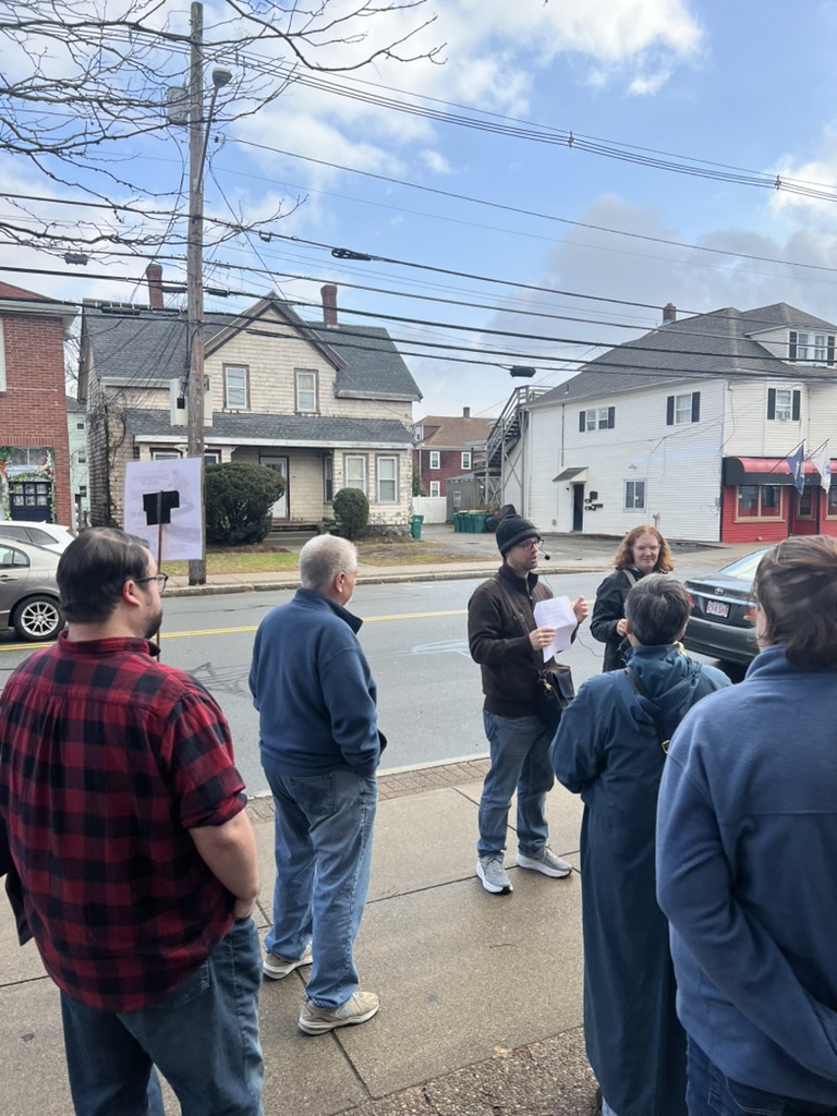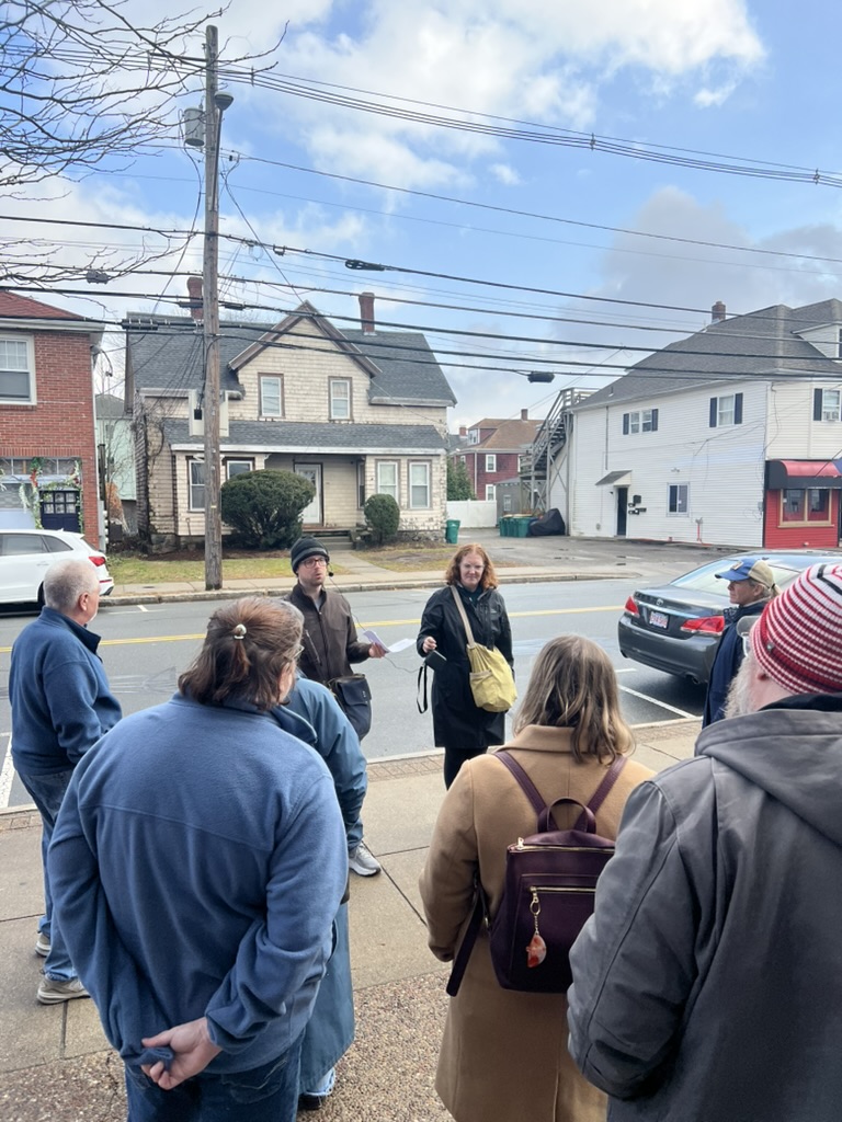 Shortly before Thanksgiving weekend, Norwood for All brought neighbors together on Saturday 11/22 for a thoughtful and energizing community walking tour of town; focused on how housing, zoning, and neighborhood design shape everyday life in Norwood. The walk —which featured the town’s Asst. Director of Community Development, Ilex Jones— drew a mix of residents, local advocates, and first-time participants who came ready to observe, learn, and talk about the future of the town.